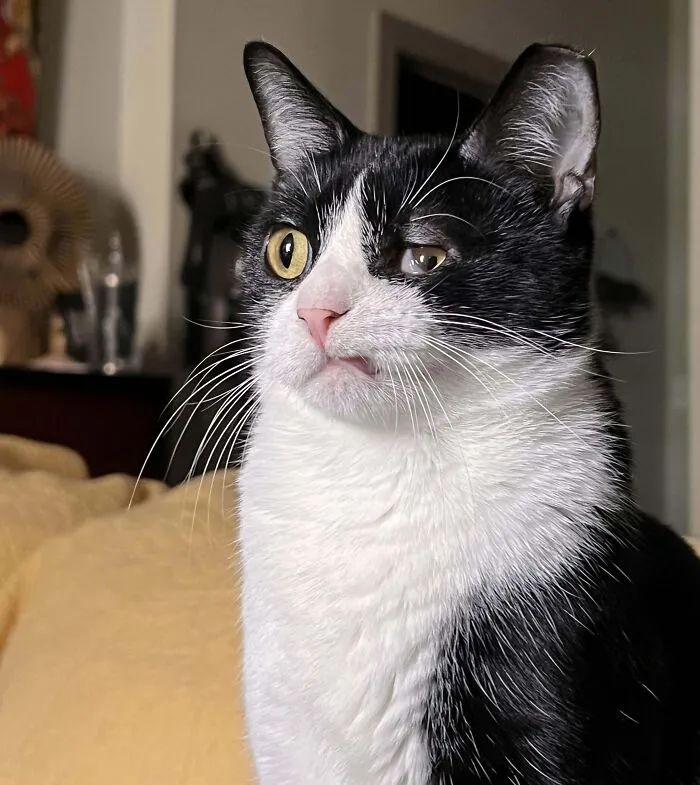 ▍重力挑战者联盟明明踩着猫步走出T台气势,下一秒就和自己的后腿打起架;刚在书架上走出超模定点pose,转身就带倒整个手办陈列柜。养过燕尾服猫的人都懂:"它们不是笨,只是每天都在测试地心引力的极限。"