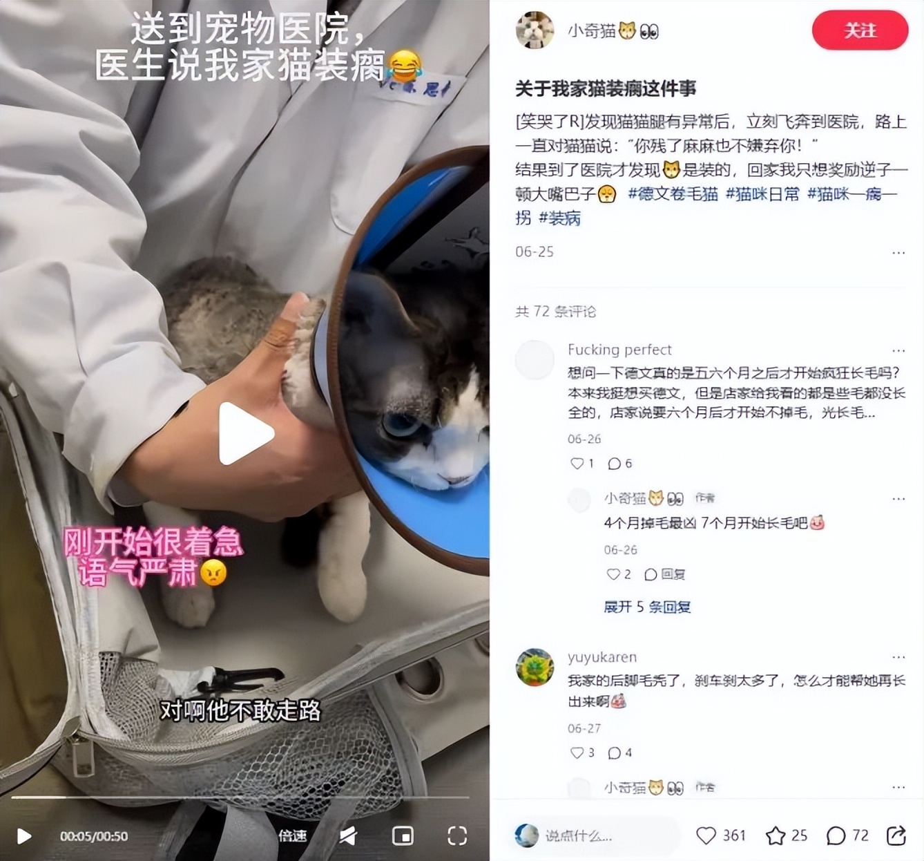 “我家猫腿瘸,带去检查,最后确诊,装的。”