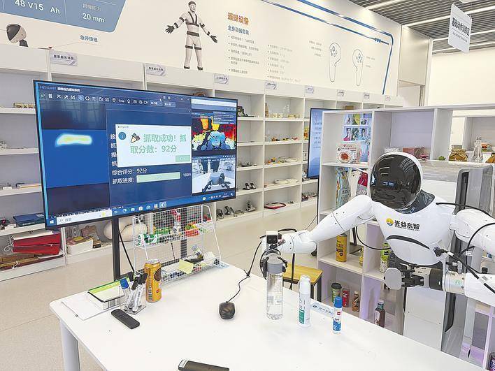 湖北造机器人抓取物品后,训练系统为它的动作打出92分。