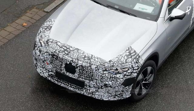 正在进行测试的车辆包括标准版与Coupe轿跑版,新车虽说都把包括格栅、大灯、前保险杠在内的整张前脸遮盖得严严实实的,可一方面,车辆已经完成了大灯的更换,而且无论是中央点亮的三叉星造型日行灯,还是一圆一方的远近光灯,它从外部造型到内部结构都与奔驰GLC EV高度一致。不过,GLC是否会像纯电版那样得到包括投影交互在内的新功能还不得而知,至少这造型是跟上了家族前沿设计的。