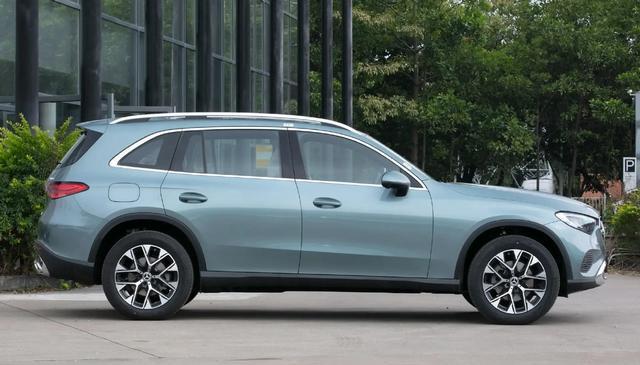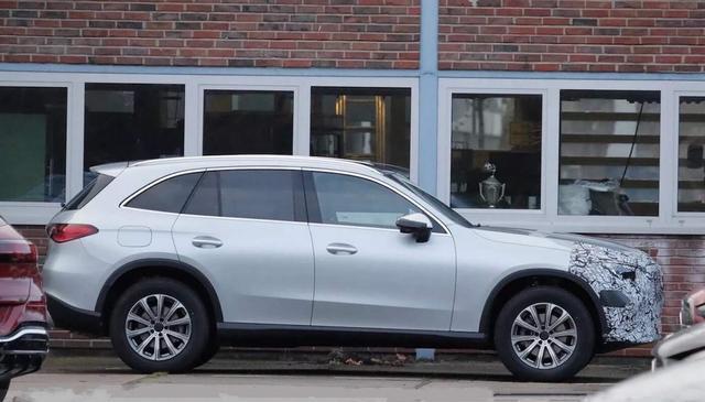 侧身来看,奔驰GLC倒是没有太明显的调整,无论是后段腰线,还是下腰线,车辆都保持了一种锐利感、与国内在售的现款车型也没太大差别。不过,咱仔细对比国产长轴距版,这海外改款车的车窗线装饰倒是要显得单薄些,不过,连同后排与后侧窗都完成了隐私车窗玻璃覆盖,考虑到这是一台测试车,后续应该还会有装饰上调整。